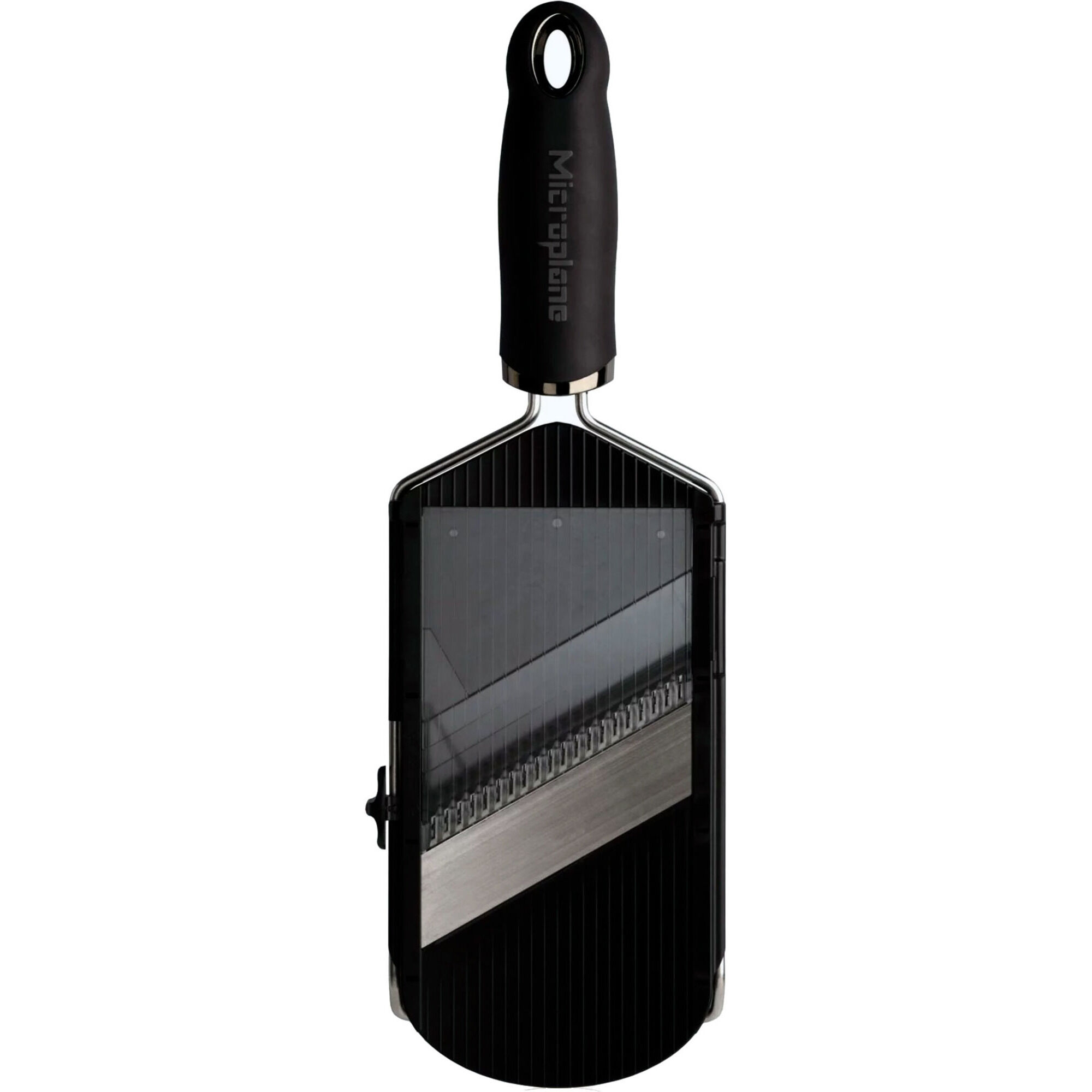 Det ultimative mandolinjern fra Microplane, der er udstyret med to slags skær. Du får nemlig muligheden for enten at lave skiver eller juliennesstrimler. Det der kendetegner Microplanes rivejern, er det sylskarpe fotoætsede skær, der er så skarpt det kan